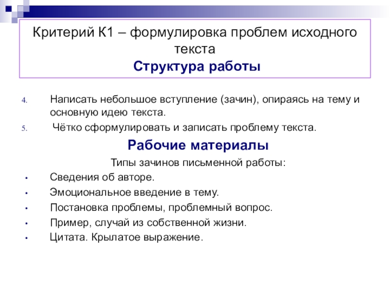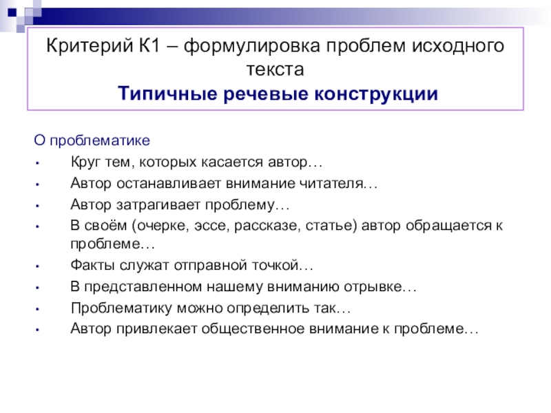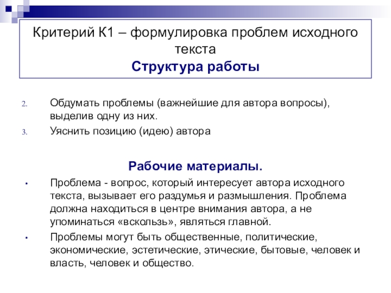 Слайд 8Критерий К1 – формулировка проблем исходного текста.