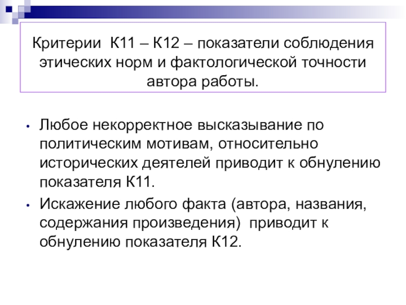 Критерии К11 – К12 – показатели соблюдения этических норм и фактологической