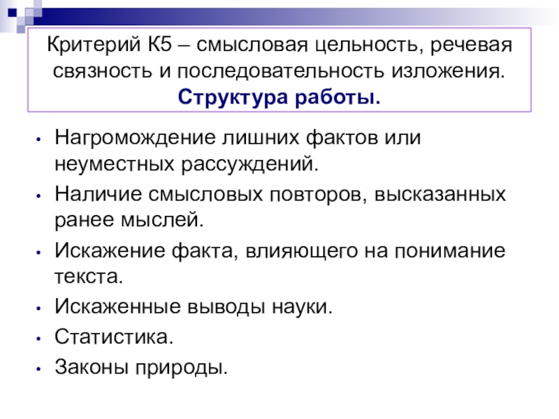 Слайд 29Критерий К5 – смысловая цельность, речевая связность и последовательность изложения