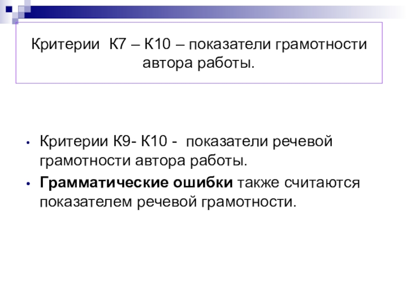 Слайд 35Критерии К7 – К10 – показатели грамотности автора работы.