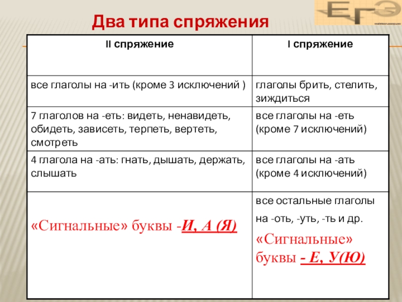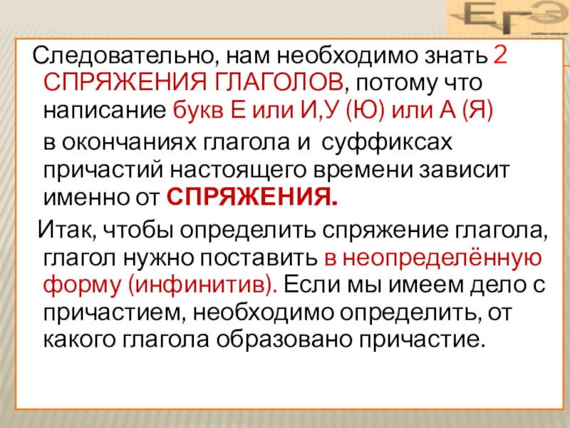 Слайд 5 Следовательно, нам необходимо знать 2 СПРЯЖЕНИЯ ГЛАГОЛОВ, потому что написание