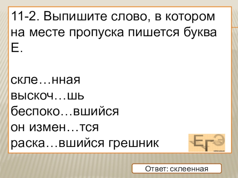 11-2. Выпишите слово, в котором на месте