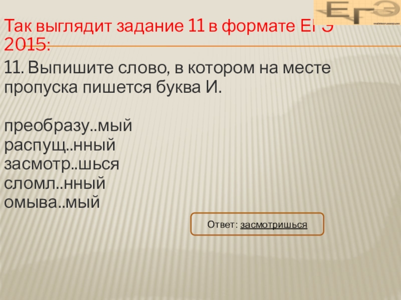 Слайд 3Так выглядит задание 11 в формате ЕГЭ 2015: