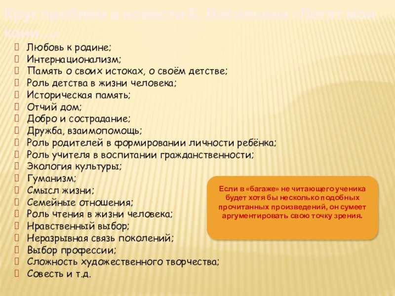 Если в «багаже» не читающего ученика будет хотя бы несколько подобных прочитанных произведений, он сумеет аргументировать свою точку зрения.