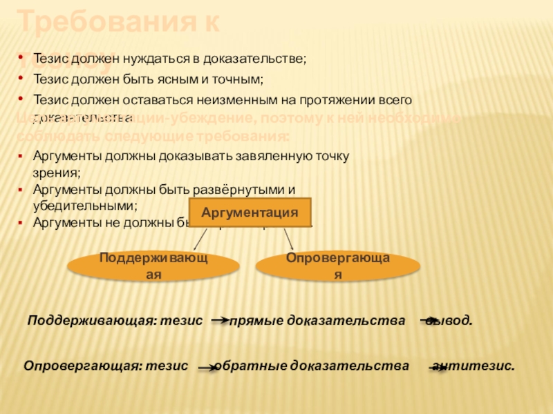 Цель аргументации-убеждение, поэтому к ней необходимо соблюдать следующие требования: