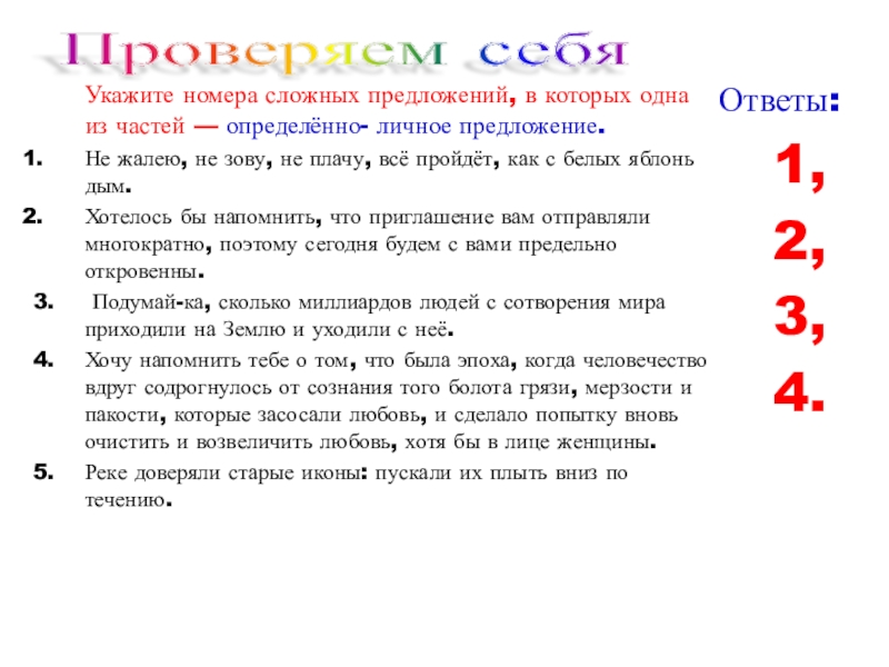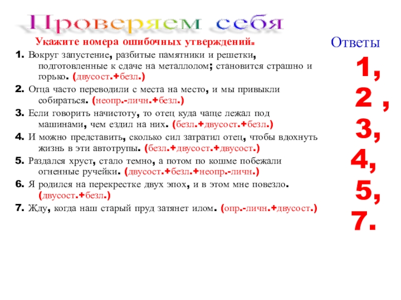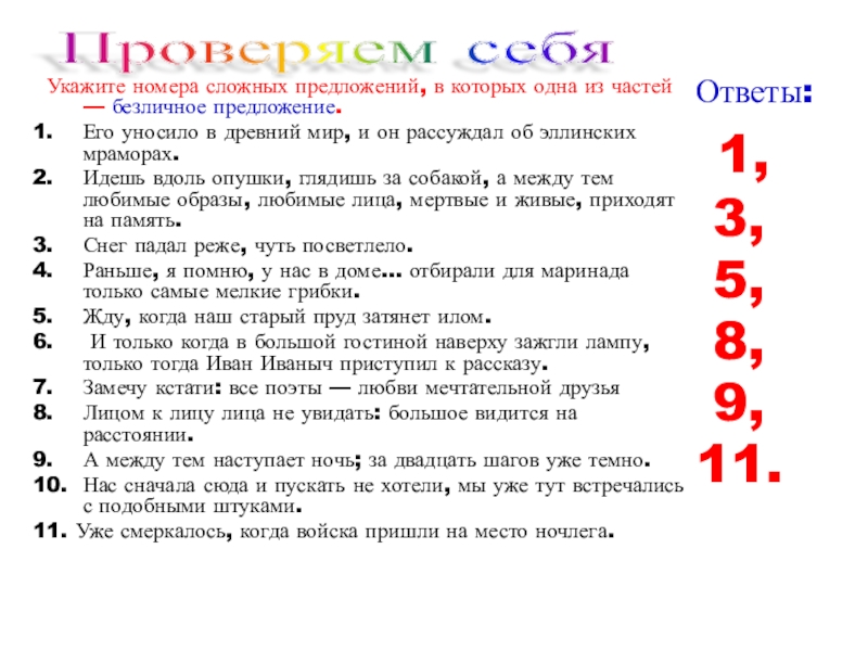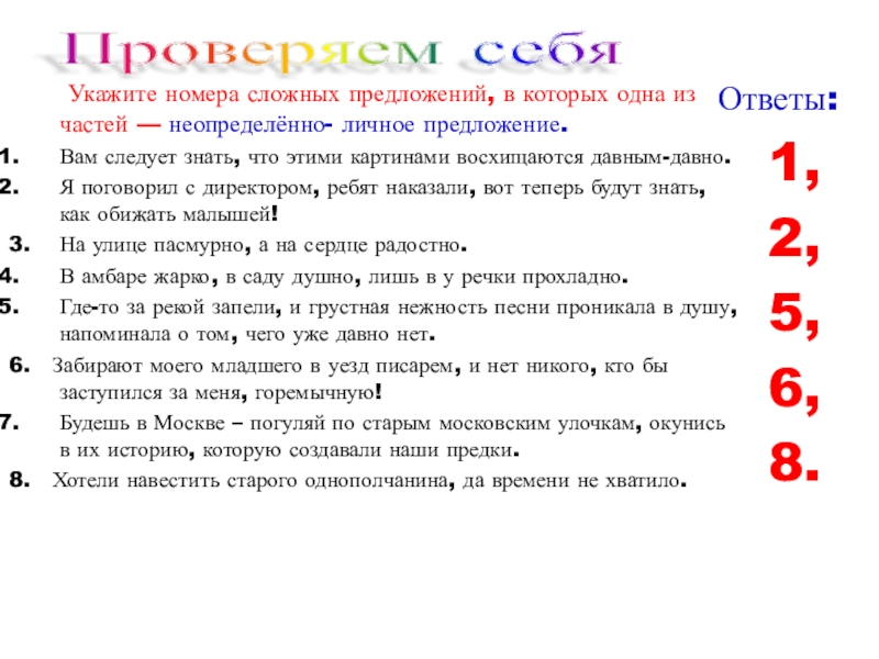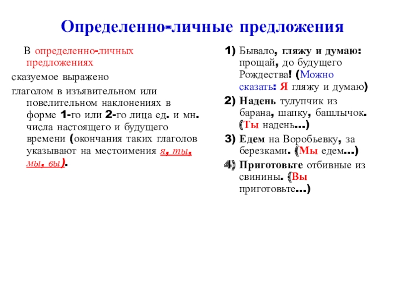 (Ко всем сказуемым можно поставить местоимение они)