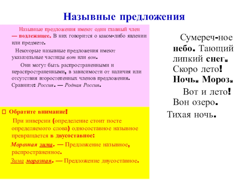 При инверсии (определение стоит посте определяемого слова) односоставное назывное превращается в двусоставное: