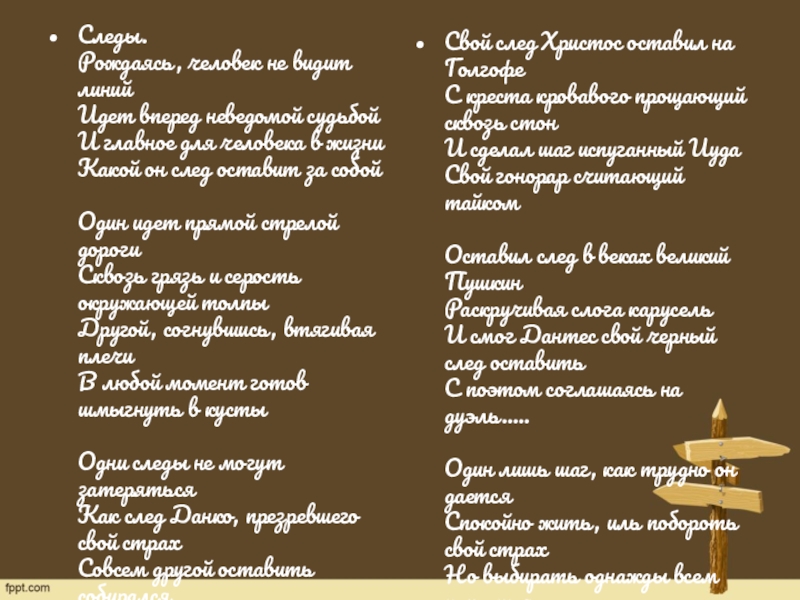 Поэтому лишь трудясь, заботясь о других, стремясь побороть себя, мы сможем найти и достойно пройти свой путь жизни.