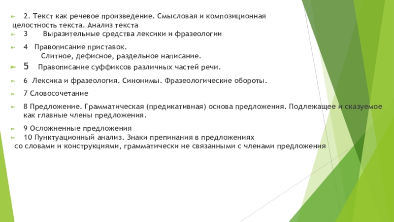 2. Текст как речевое произведение. Смысловая и композиционнаяцелостность текста. Анализ текста 3 Выразительные средства лексики и фразеологии  4 Правописание приставок.          Слитное, дефисное, раздельное написание.5 Правописание суффиксов различных частей
