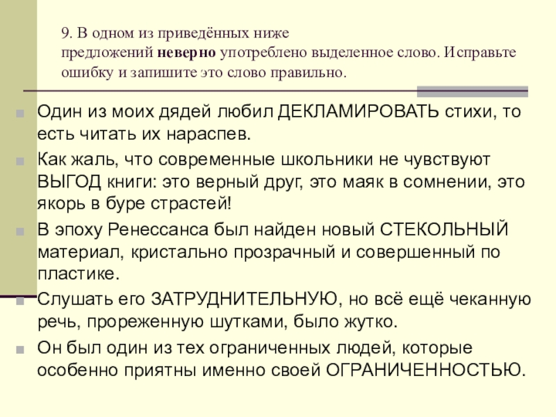 Один из моих дядей любил ДЕКЛАМИРОВАТЬ стихи, то есть читать их нараспев.