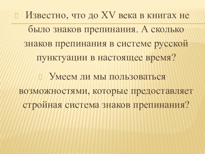 Слайд 3 Известно, что до XV века в книгах не было знаков