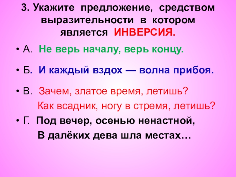 3. Укажите предложение, средством выразительности в котором является ИНВЕРСИЯ.