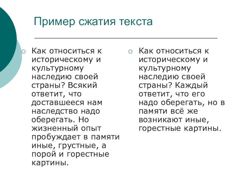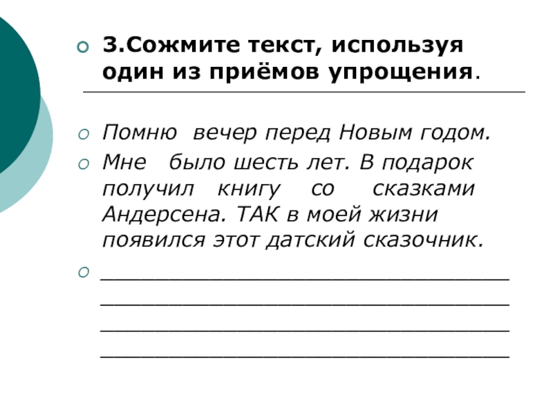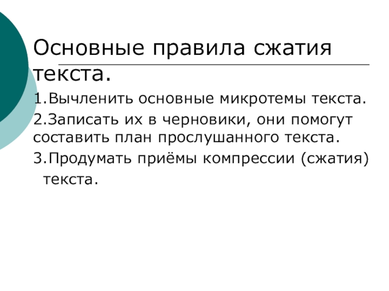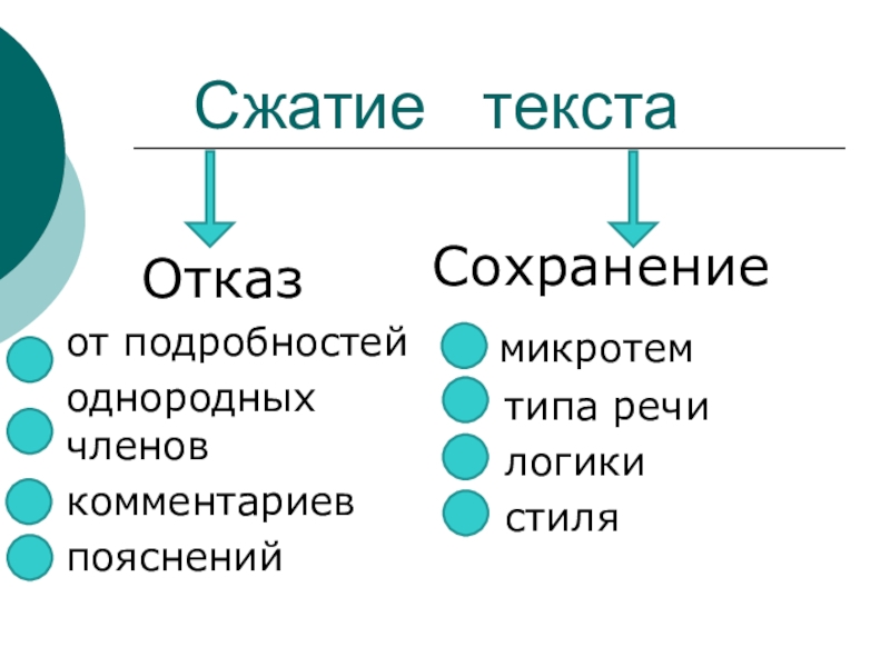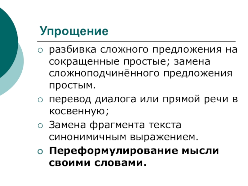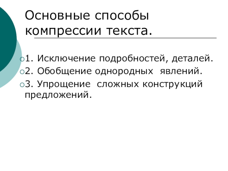 Пропуск предложений, содержащих второстепенные факты; пропуск предложений с описаниями и рассуждениями.