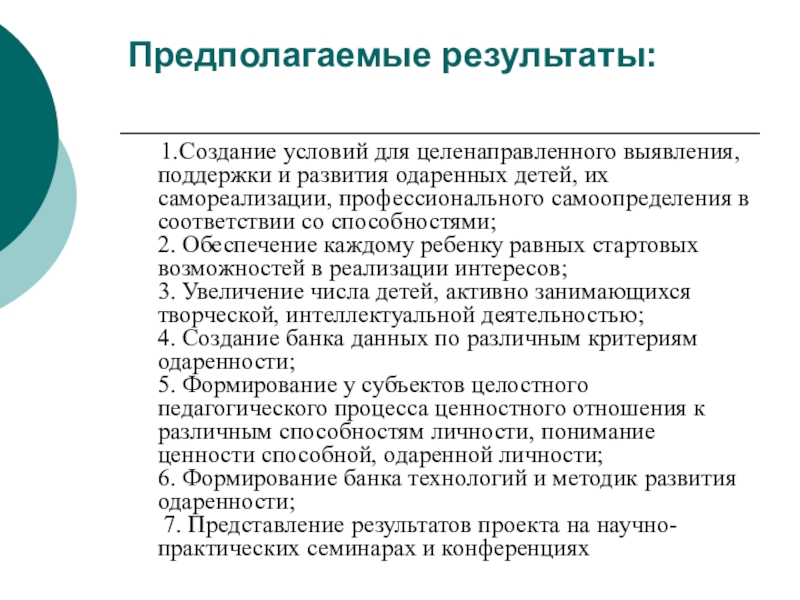 развития одаренных детей, их самореализации, профессионального самоопределения в соответствии со способностями;