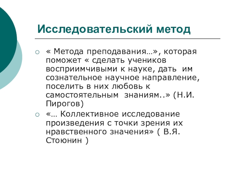 к науке, дать им сознательное научное направление, поселить в них любовь к самостоятельным знаниям..» (Н.И. Пирогов)
