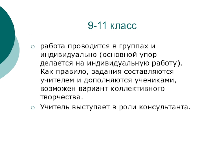 работы проводятся коллективно, в группах и индивидуально. Ученики могут сами