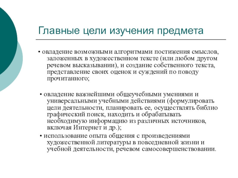 • овладение возможными алгоритмами постижения смыслов, заложенных в