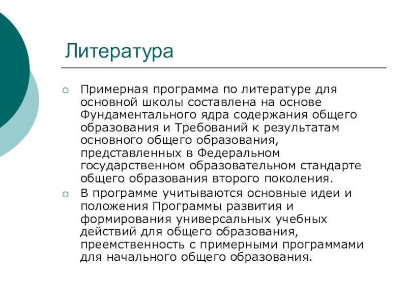 Примерная программа по литературе для основной школы составлена на основе Фундаментального