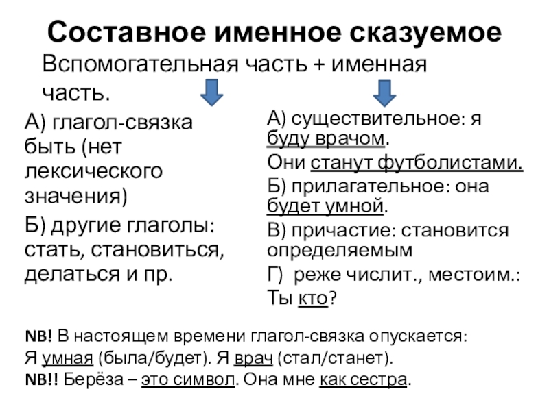 NB! В настоящем времени глагол-связка опускается: Я умная (была/будет). Я врач (стал/станет).
