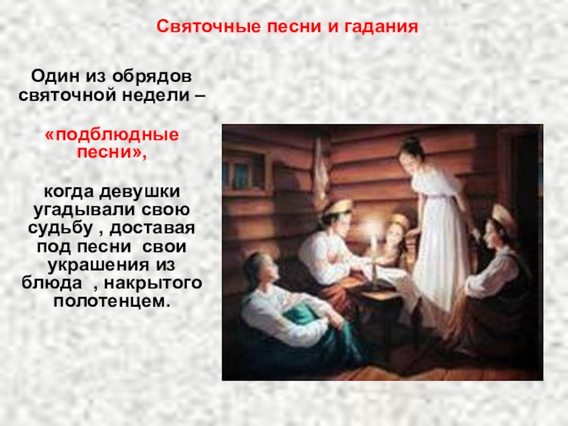 судьбу , доставая под песни свои украшения из блюда , накрытого полотенцем.