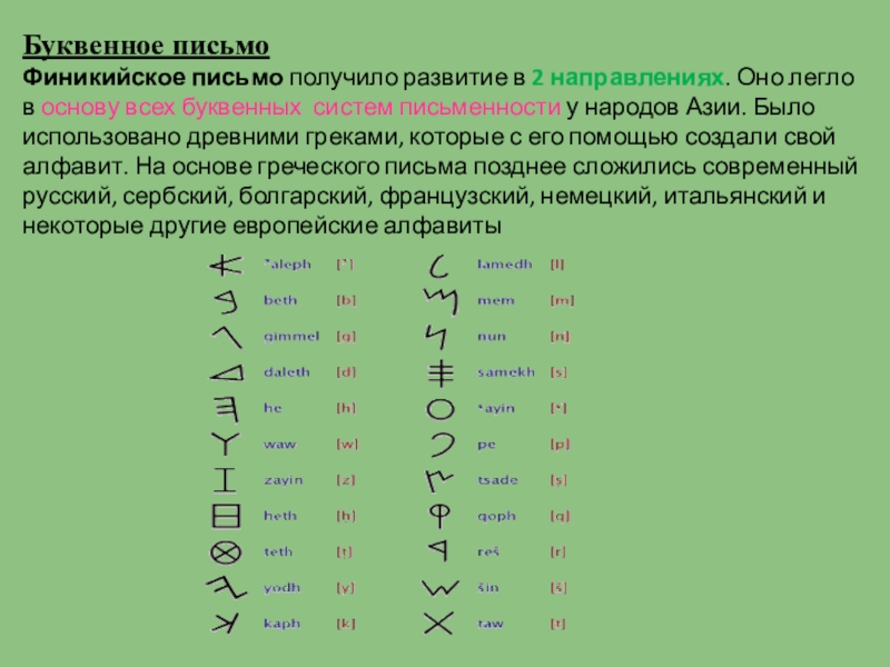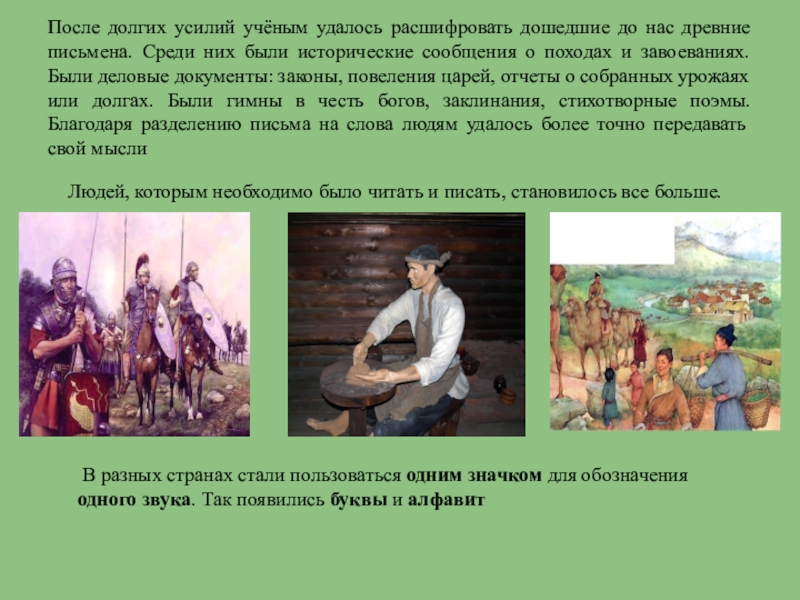 В разных странах стали пользоваться одним значком для обозначения одного звука. Так появились буквы и алфавит