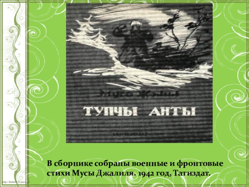 Слайд 12В сборнике собраны военные и фронтовые стихи Мусы Джалиля. 1942 год,
