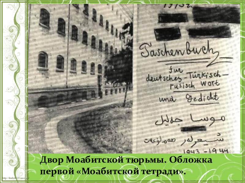 Слайд 21Двор Моабитской тюрьмы. Обложка первой «Моабитской тетради».