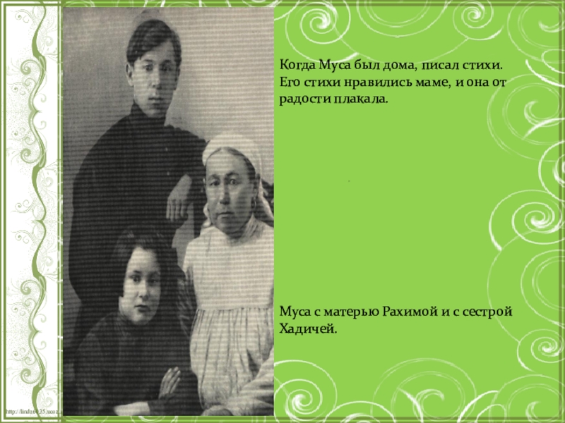 Слайд 5Когда Муса был дома, писал стихи. Его стихи нравились маме, и