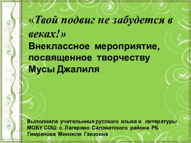 Внеклассное мероприятие, посвященное творчеству Мусы Джалиля
