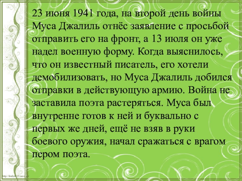 Слайд 1323 июня 1941 года, на второй день войны Муса Джалиль отнёс