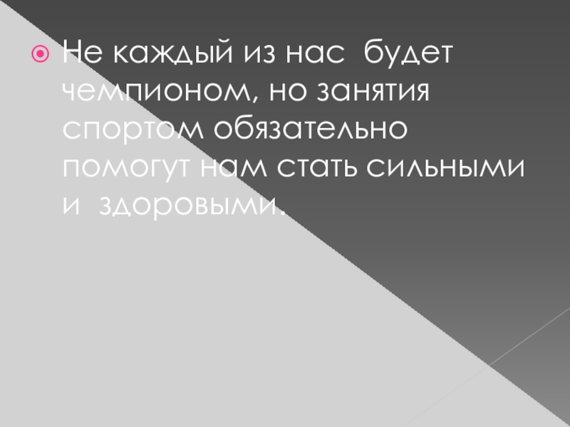 Не каждый из нас будет чемпионом, но занятия спортом обязательно помогут нам стать сильными и здоровыми.