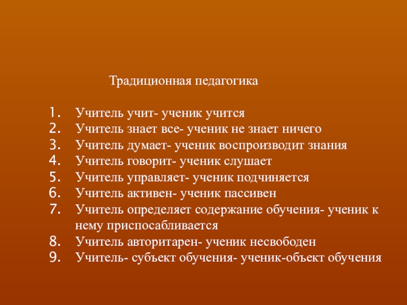 Учитель определяет содержание обучения- ученик к нему приспосабливается