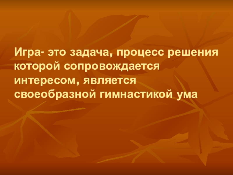 Игра- это задача, процесс решения которой сопровождается интересом, является своеобразной гимнастикой ума