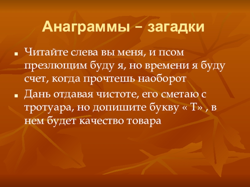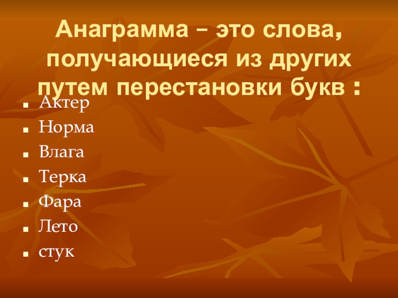 Слайд 31Анаграмма – это слова, получающиеся из других путем перестановки букв :