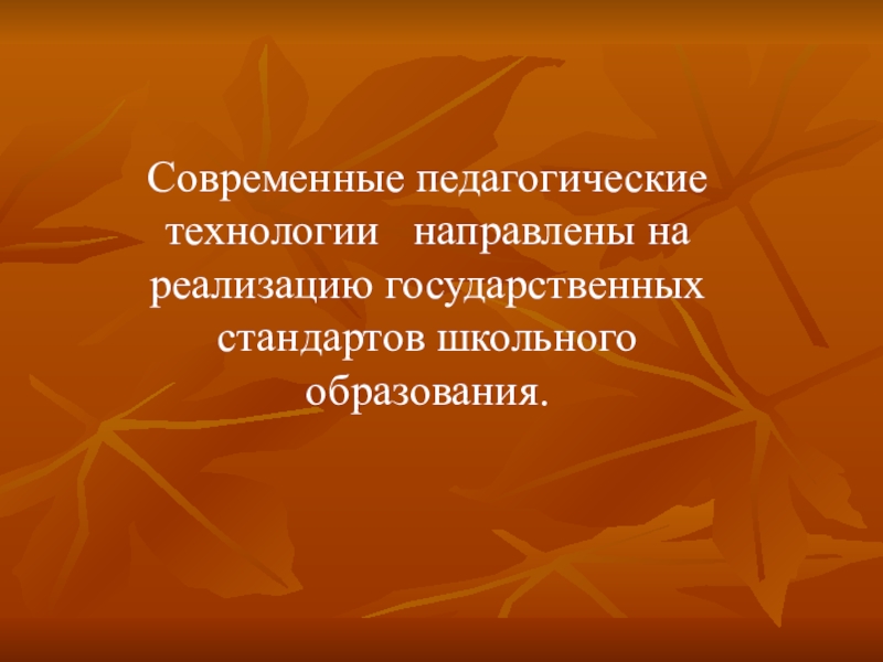 Слайд 9Современные педагогические технологии направлены на реализацию государственных стандартов школьного образования.