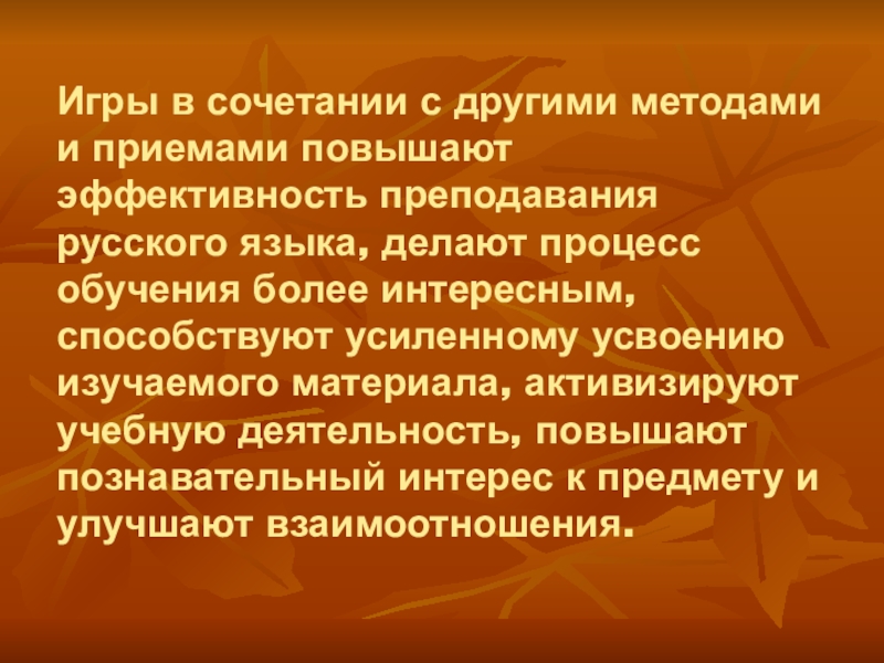 Игры в сочетании с другими методами и приемами повышают эффективность преподавания