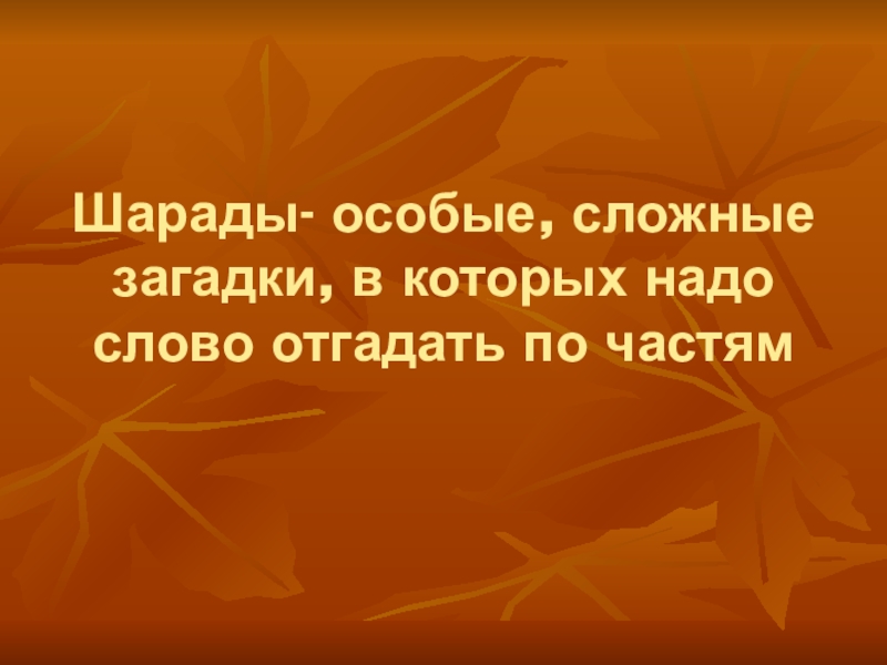 Шарады- особые, сложные загадки, в которых надо слово отгадать по частям