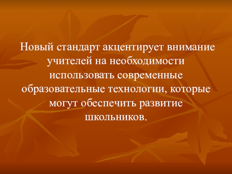 Слайд 3Новый стандарт акцентирует внимание учителей на необходимости использовать современные образовательные технологии,