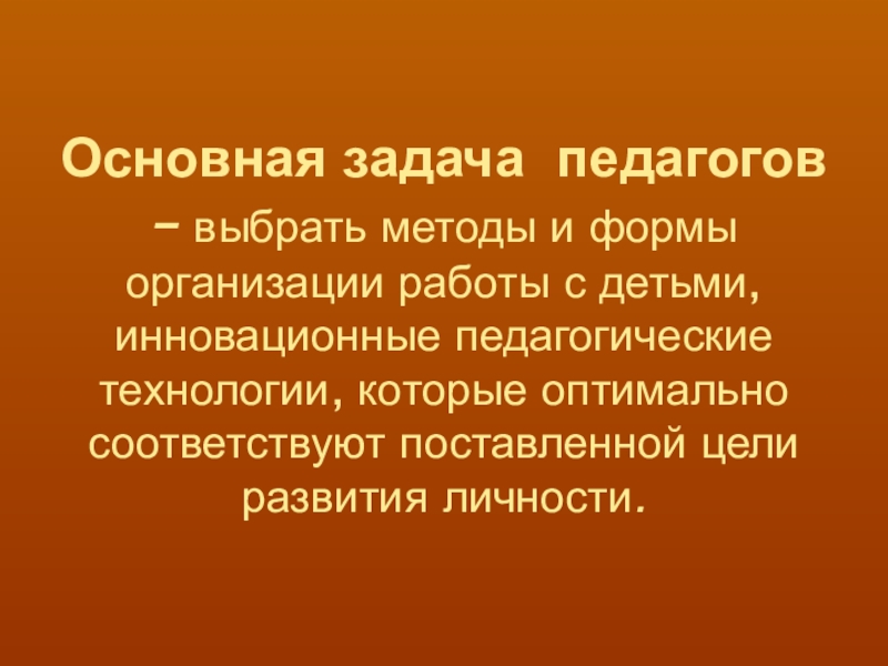 Слайд 10Основная задача педагогов – выбрать методы и формы организации работы с