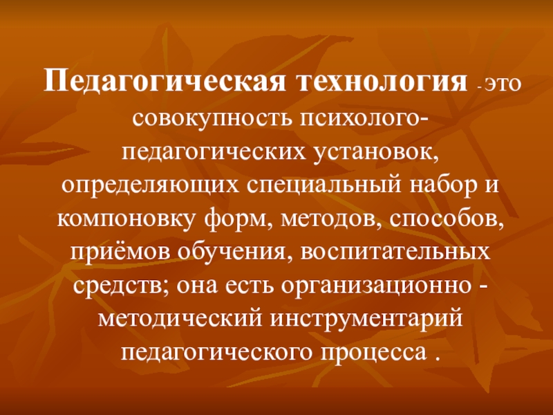 Слайд 8Педагогическая технология - это совокупность психолого-педагогических установок, определяющих специальный набор и