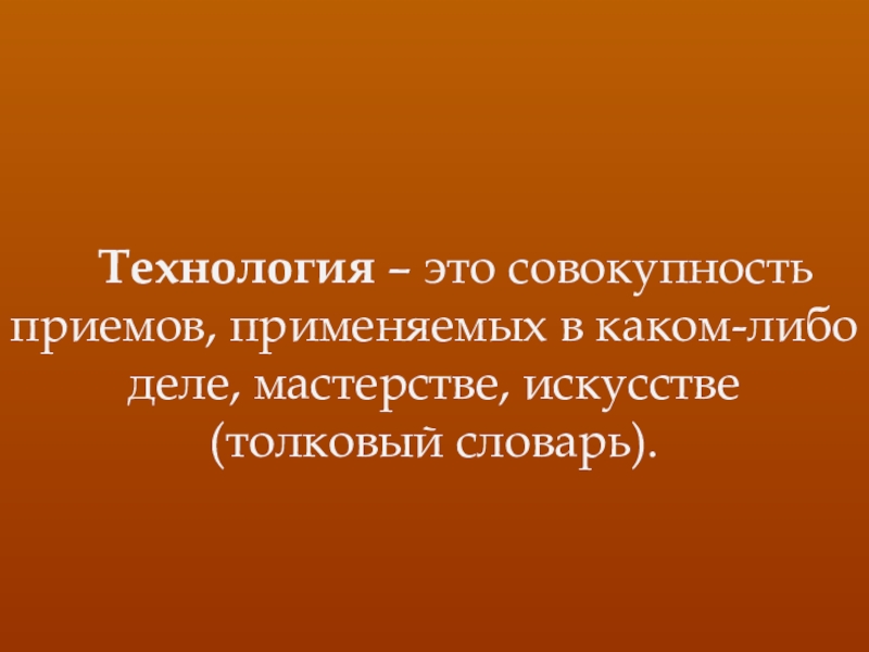 Слайд 6Технология – это совокупность приемов, применяемых в каком-либо деле, мастерстве, искусстве