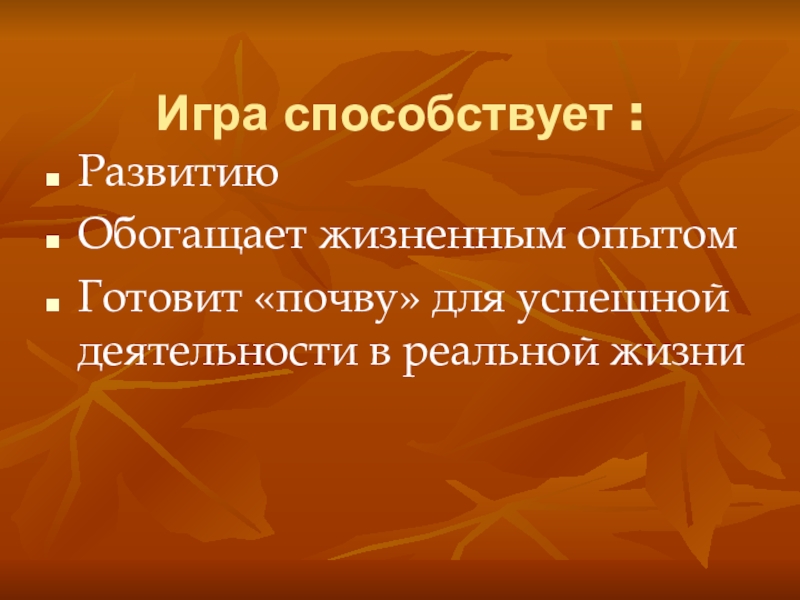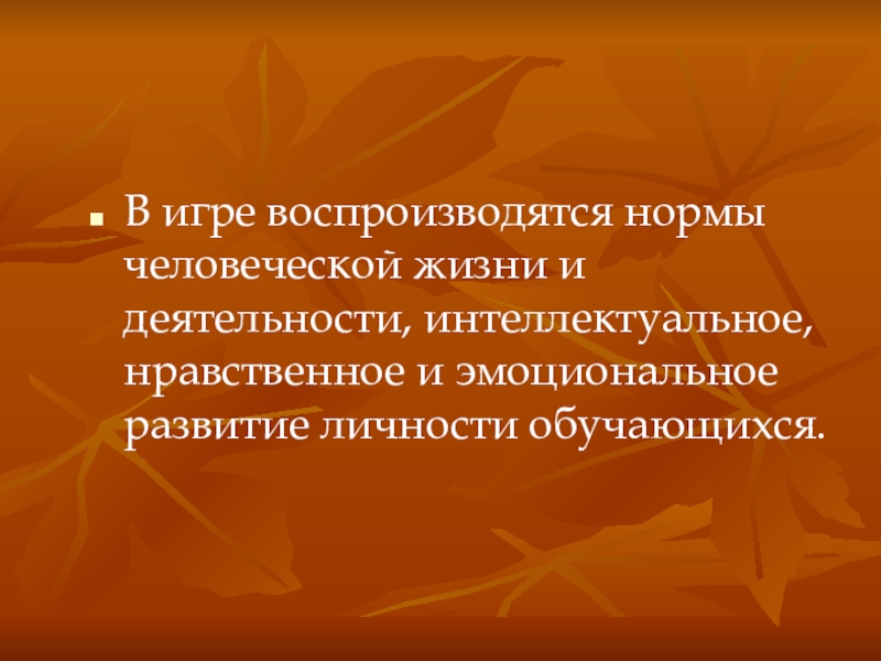 Слайд 20В игре воспроизводятся нормы человеческой жизни и деятельности, интеллектуальное,
