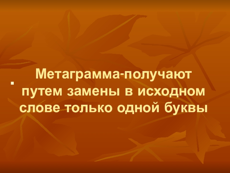 Метаграмма-получают путем замены в исходном слове только одной буквы