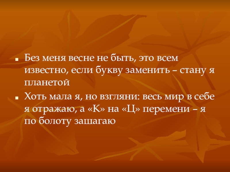 Без меня весне не быть, это всем известно, если букву заменить – стану я планетой