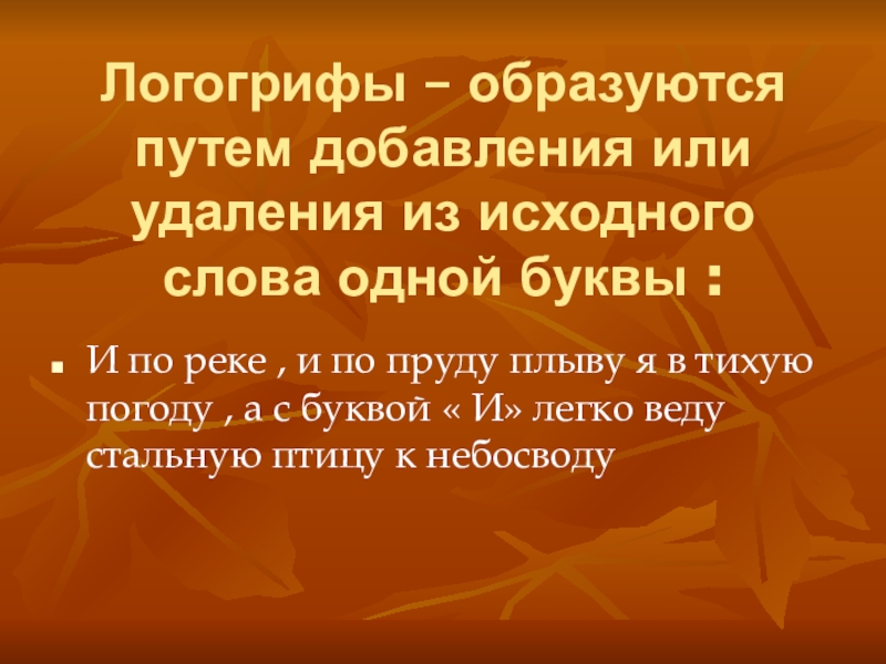 Логогрифы – образуются путем добавления или удаления из исходного слова одной буквы :