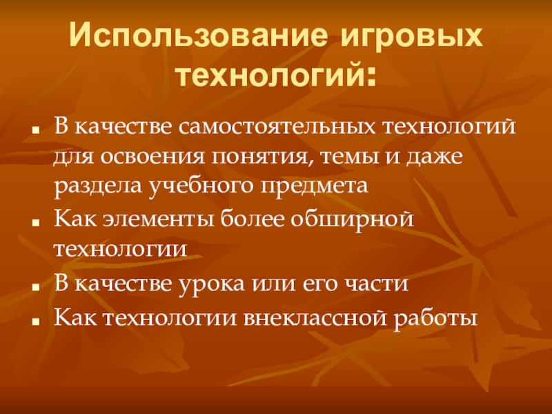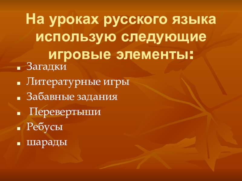 Слайд 1Использование игровых технологий на уроках русского языка.