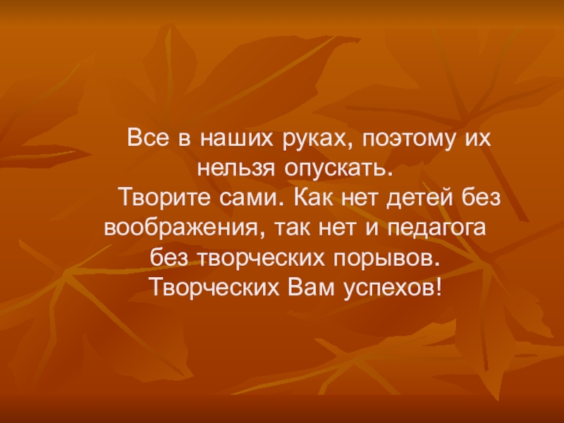 Слайд 46Все в наших руках, поэтому их нельзя опускать.