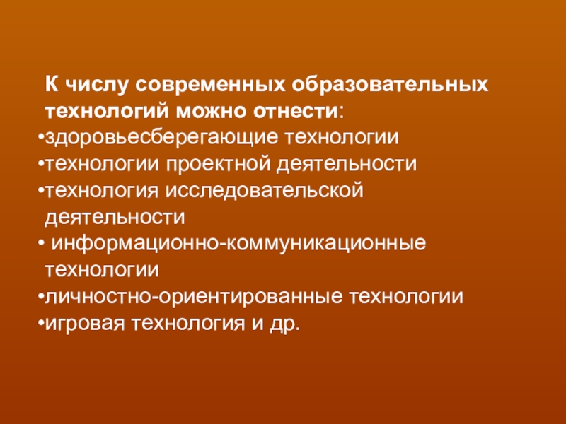 Слайд 11К числу современных образовательных технологий можно отнести: