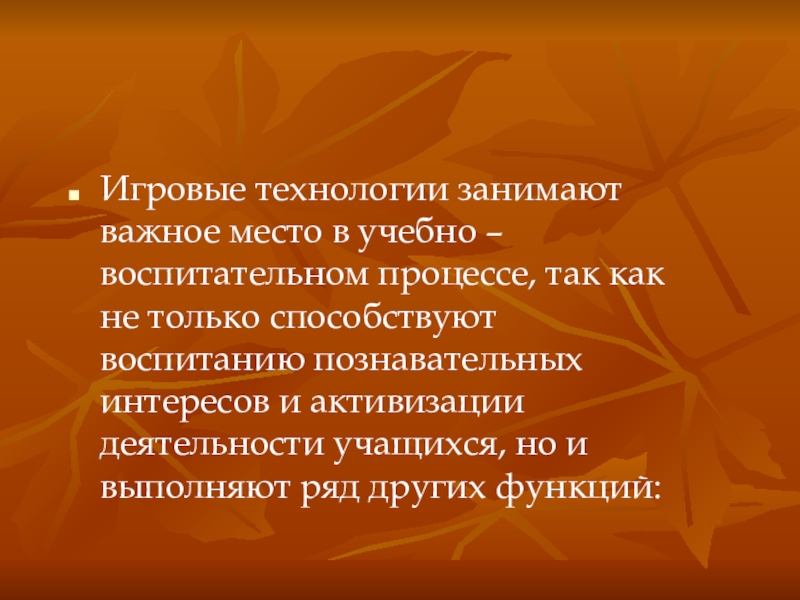Игровые технологии занимают важное место в учебно – воспитательном процессе, так