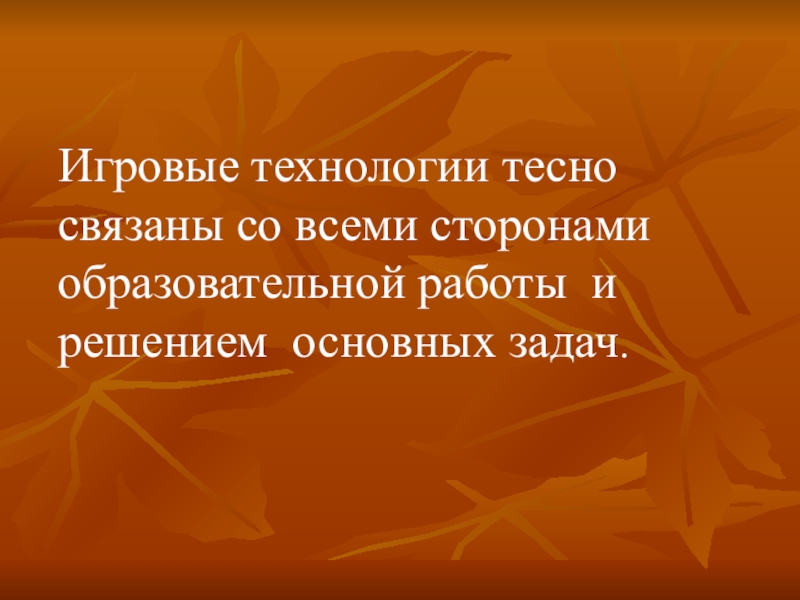 Слайд 14Игровые технологии тесно связаны со всеми сторонами образовательной работы и решением